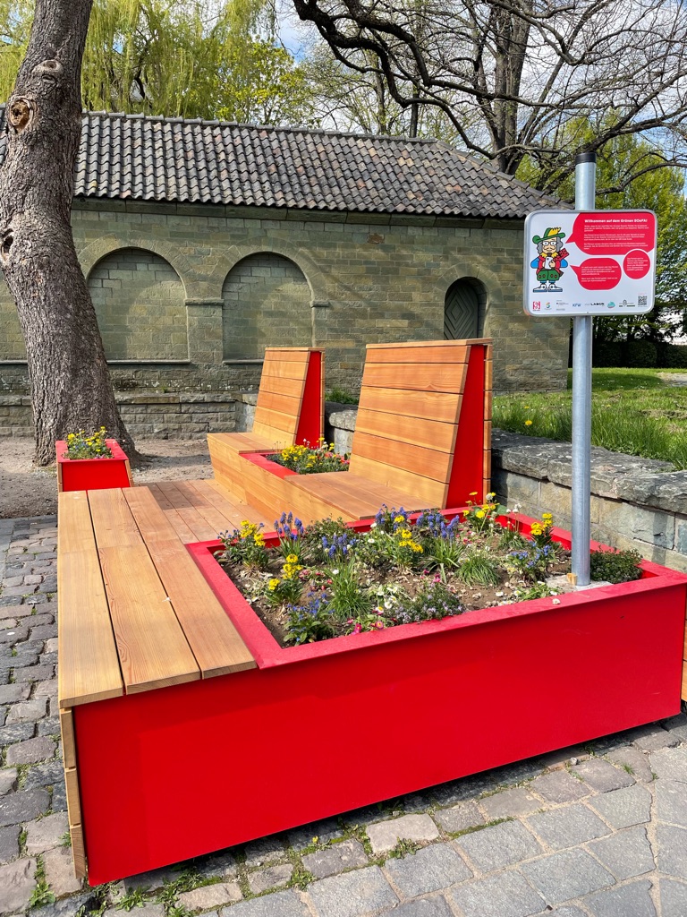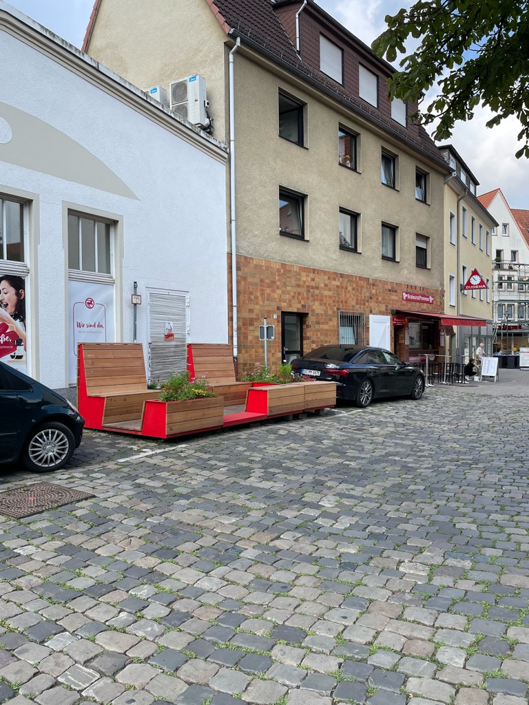 Das Parklet werden Sie immer wieder an anderen Orten finden, da es alle paar Monate im Innenstadtgebiet wandert.